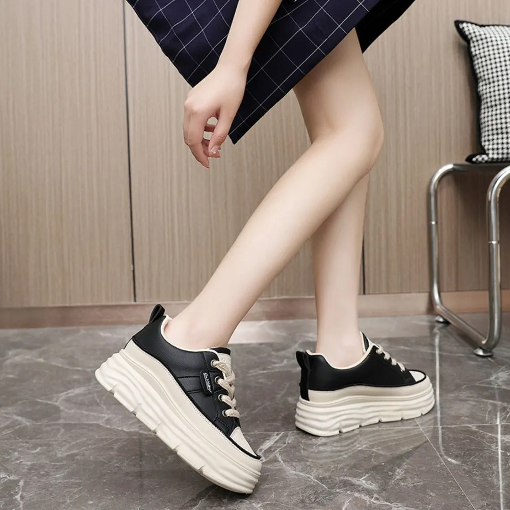 Lace Up Round Toe Platform Sneakers