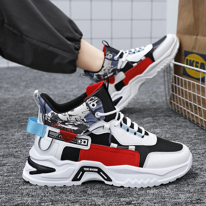 Autumn New Trendy Men’s Shoes Personalized Graffiti High Top Men’s Shoes Casual Four Seasons Student Sports Board Shoes Men’s Tr